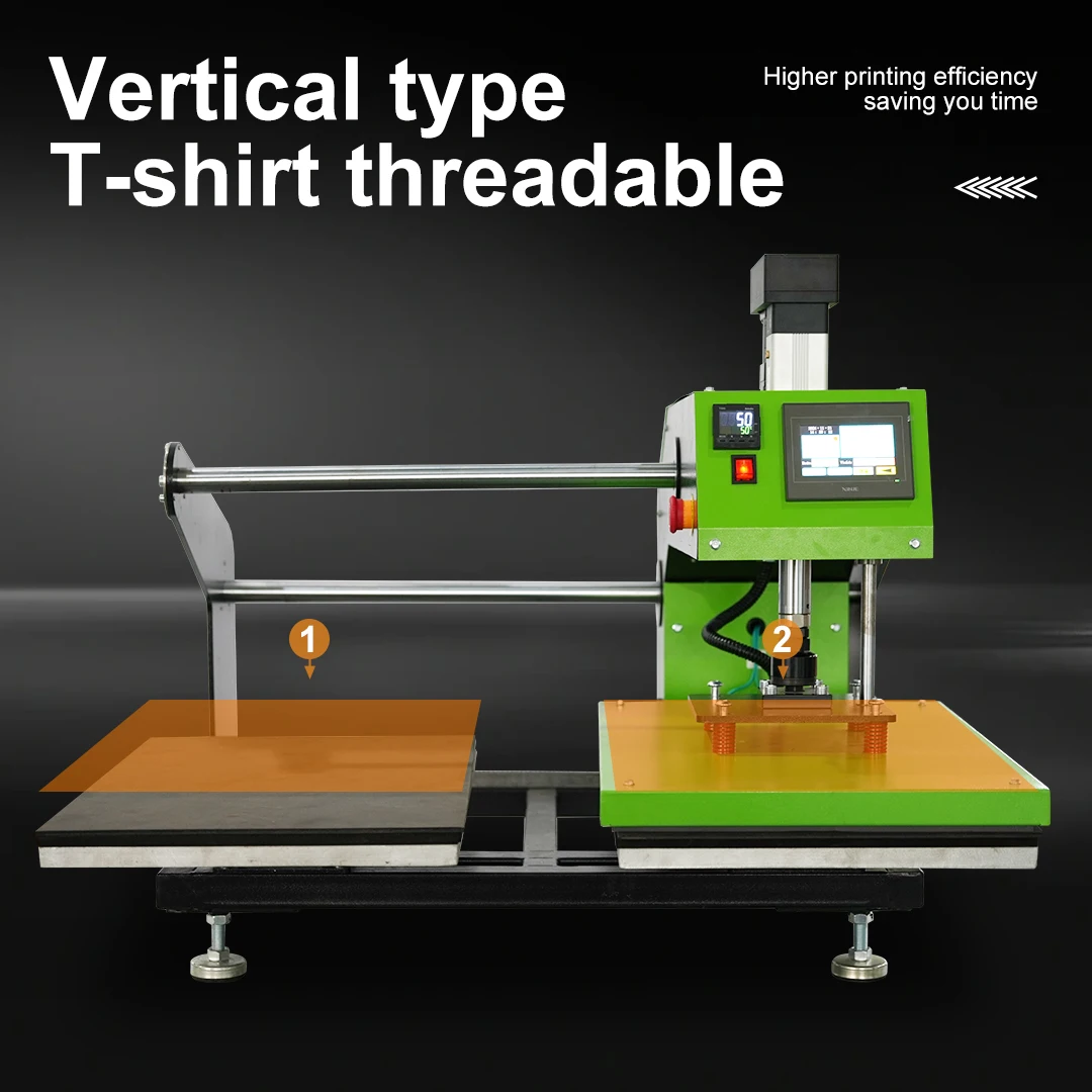 Dual Working Table Oil-Free Noiseless Vertical Heat Press Machine Electric Servo Motor Auto-Manual System for Heat Transfers